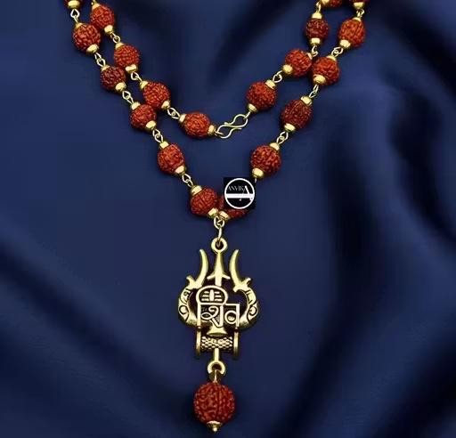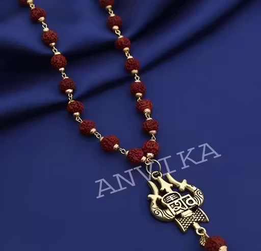 Original 5 Mukhi Rudraksha Cap Mala With Shiv Trishul Pendant. Spiritual Necklace