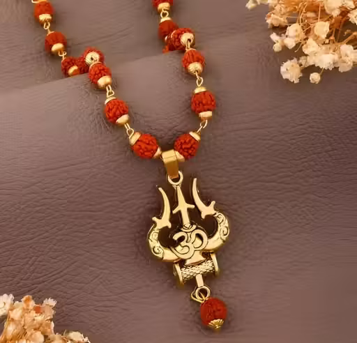 Premium Rudraksha Beads Mala Necklace with Gold Plated Trishul Om Pendant, specially designed for men and women. This spiritual Rudraksha mala chain features authentic textured beads linked with a durable golden chain and a divine Om Trishul pendant, symbolizing protection, positivity, and devotion. Perfect for daily wear, puja, meditation, and gifting on festivals like Mahashivratri and Shravan. Lightweight, skin-friendly, and ideal for religious, traditional, and spiritual use. Keywords- mens neck chain, mens necklace, mens neck chains silver, mens neck chains, Chain, men pendant,rudraksh mala original, rudraksh mala for men, rudraksh mala, om trishul locket, Om Trishul pendant, spiritual necklace, Shiv trishul locket, religious jewellery, gold plated rudraksha mala, pooja necklace, Mahadev necklace, Rudraksha chain for women.