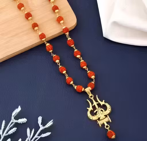 Name: Rudraksha Mala Necklace with Gold Plated Om Trishul Pendant for Men & Women